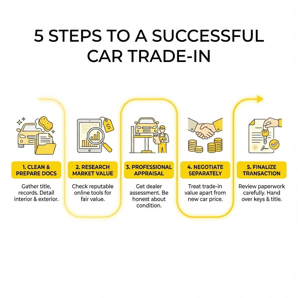 Presentation matters, documentation builds trust, and knowledge of your vehicle’s true value is your strongest asset. Avoid the “monthly payment” trap by negotiating the new car price and your trade-in value separately. Be honest about your vehicle’s condition, and leverage online tools and multiple quotes to your advantage.