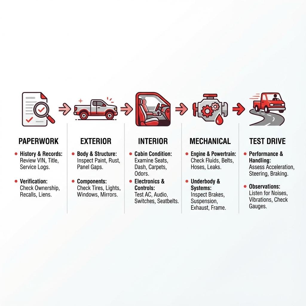 The mechanical checks under the hood and beneath the chassis form the core of your evaluation, revealing the truck’s true health. Finally, the all-important test drive brings all these observations together, allowing you to feel and hear how the truck performs in real-world conditions.